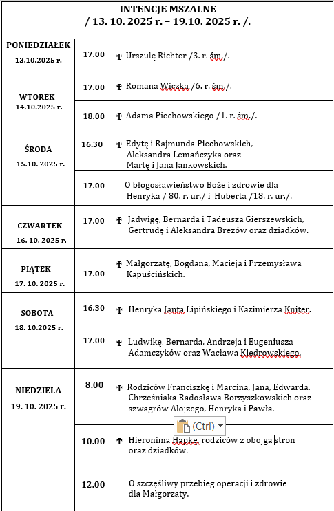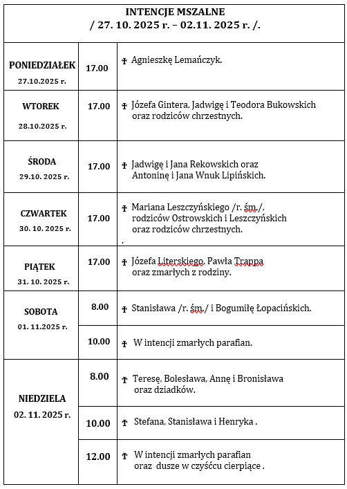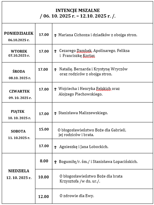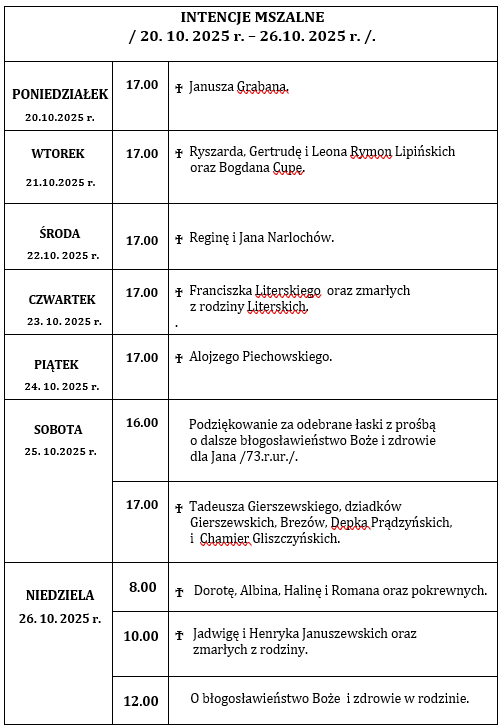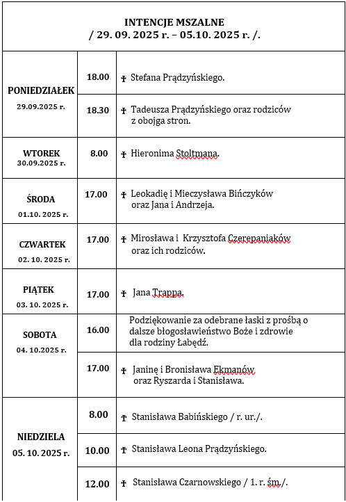INTENCJE  MSZALNE  / 19. 08. 2024 r. – 25. 08. 2024 r./.