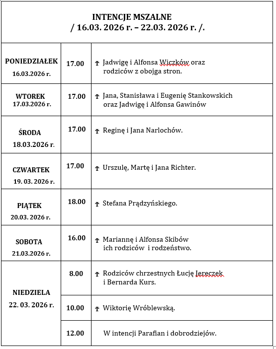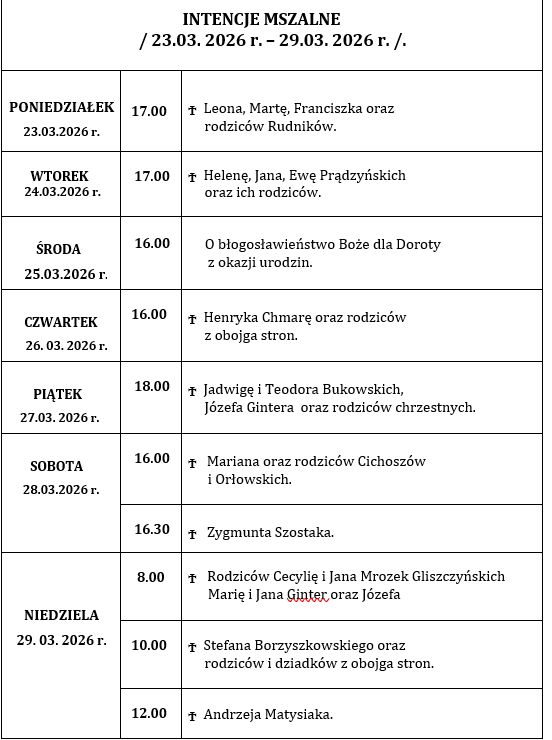 INTENCJE MSZALNE / 22. 07. 2024 r. – 28. 07. 2024 r./