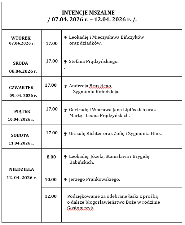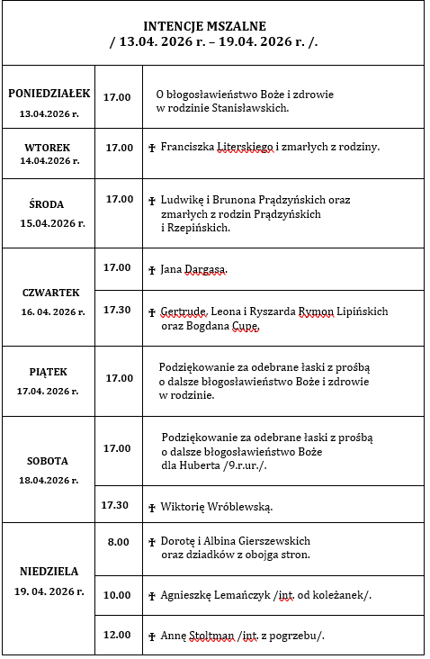 INTENCJE  MSZALNE  / 12. 08. 2024 r. – 18. 08. 2024 r./.