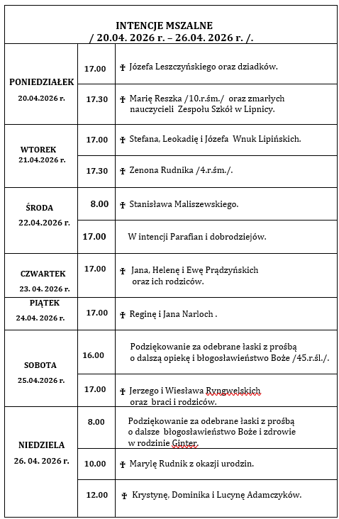 INTENCJE  MSZALNE  / 19. 08. 2024 r. – 25. 08. 2024 r./.